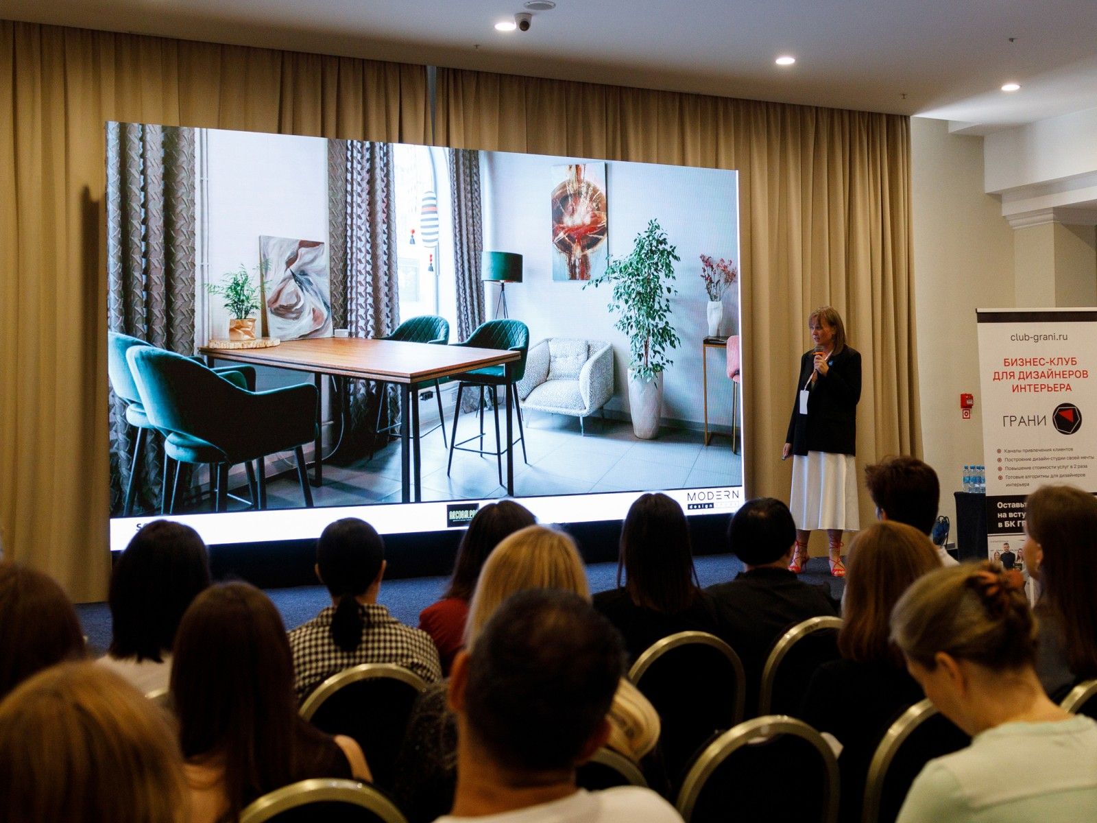Не менее интересной частью конференции стала работа партнеров. В перерывах между лекциями на сцену выходили представители компаний DESIGN STORE MODERN, Kikikitchen, ТИТАН-GS, ВОЛХОВЕЦ и других. Они рассказывали о новых коллекциях, показывали материалы и технологии, делились планами развития и приглашали гостей к сотрудничеству.