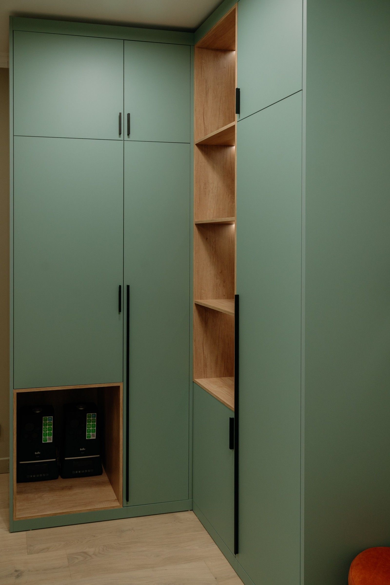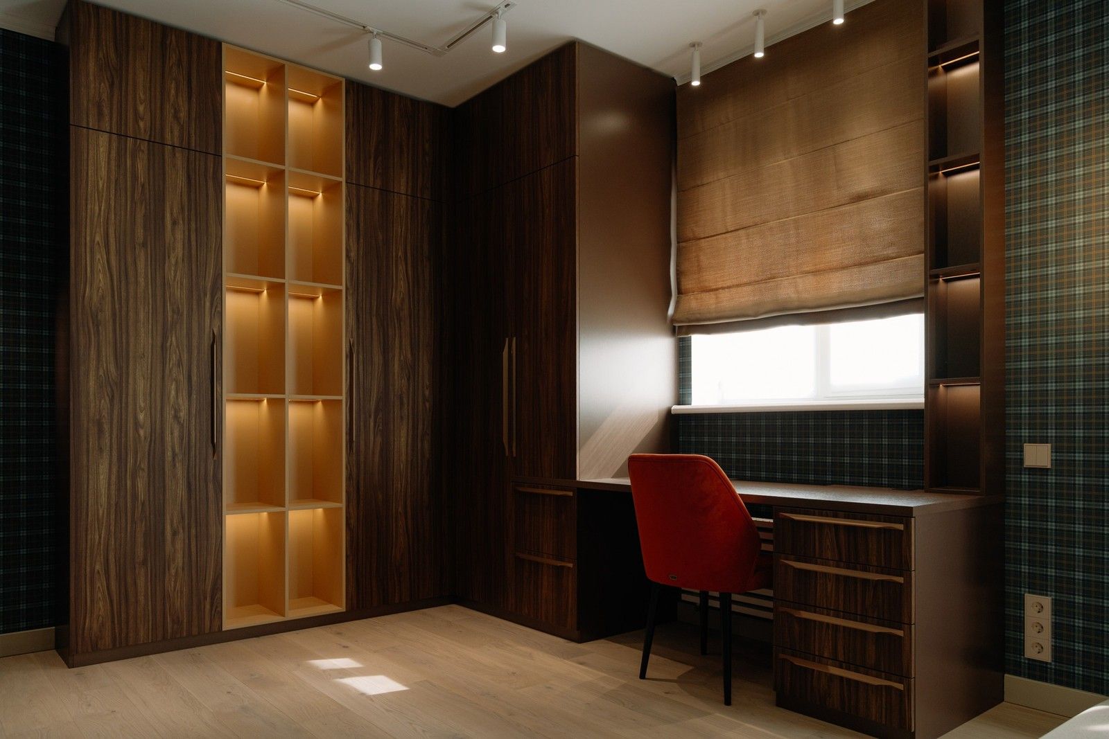 «Перед нами были заказчики, работающие в творческой сфере. А это всегда люди с богатой фантазией, собственным видением, но вместе с тем стремящиеся сделать свой дом максимально комфортным. Был запрос на спокойный, непафосный интерьер, главными доминантами которого должны стать благородные фактуры и цветовые акценты. Мы с Натальей на 100% оправдали ожидания наших клиентов. Несколько акцентов были особенно отмечены владельцами квартиры. Идеальное попадание цвета фасадов в цвет плитки в санузле, гармоничный переход деревянной текстуры на шкафах в кабинете, обеспечивающий визуальную и эстетическую целостность, даже подобранные ручки на фасадах – детали и мастерство воплощения вызывали искренние эмоции у заказчиков, после которых они уверенно произнесли: «Это наш дом».