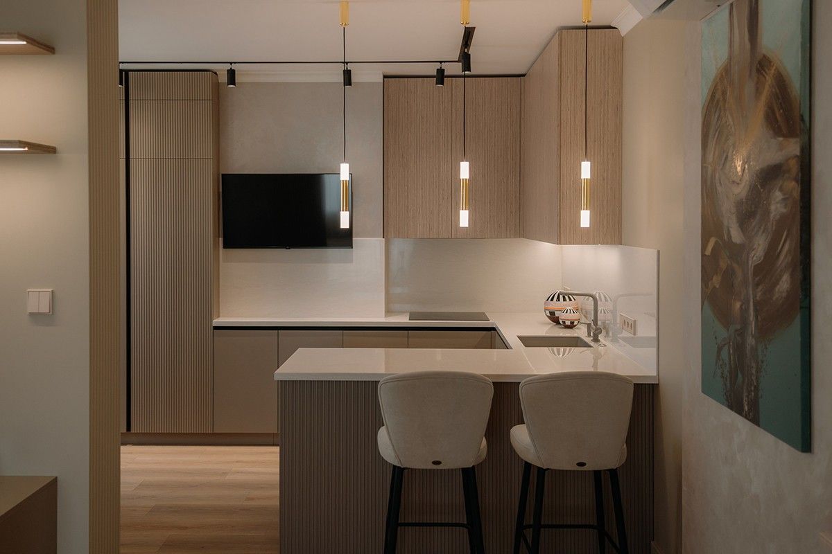 «Интерьерная задача была с нюансами – планировка квартиры не позволяла на 100% реализовать все идеи заказчика. Но мы работаем с самыми разными запросами и умеем сложности превращать в преимущества. А современные технологии, широкий ассортимент материалов и опыт сотрудников позволяют реализовать самые смелые задумки. Нам удалось абсолютно оправдать ожидания клиентов в плане комфортной эргономики квартиры, где каждая деталь оказалась на своем месте, функционально наполнена и вместе с тем не перегружена. Но главная наша победа – кухня. Хозяева квартиры уже смирились, что планировка не позволит сделать такую кухню, как они представляли, поэтому доверились нам. В итоге получилось современное и комфортное пространство, где все нужное оказалось в правильном месте. Радость в глазах заказчиков – лучшее, что может случиться в нашей профессии».