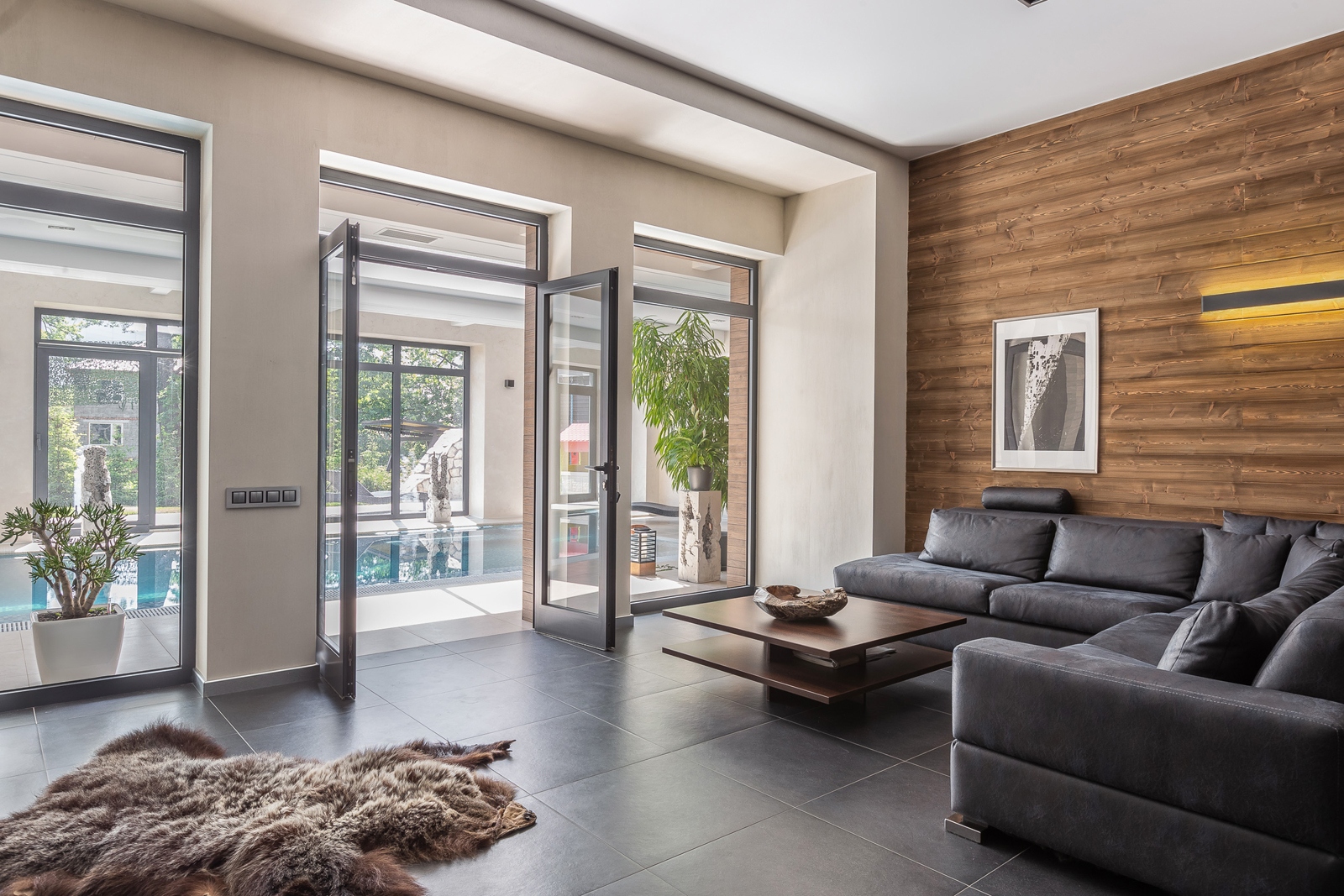 Интерьер вне времени — это не только эстетика, но и продуманная функциональность. Такой дом будет оставаться актуальным и комфортным для жизни на долгие годы. Об этом думали мы в работе над проектом коттеджа площадью 800 м². Еще на этапе проектирования мы опирались на 2 основных критерия: максимальный комфорт и функциональность. Большие окна, открытые планировки и много естественного света — обязательные элементы. Главным вдохновением при создании интерьера стала сама природа. Поэтому в основе — натуральные материалы: дерево, камень, стекло и металл. Они создают ощущение тепла и уюта, а также легко адаптируются при смене погоды за окнами. Мы использовали лаконичные формы, минимум декора и много встроенной мебели, чтобы пространство наполнялось светом и воздухом.