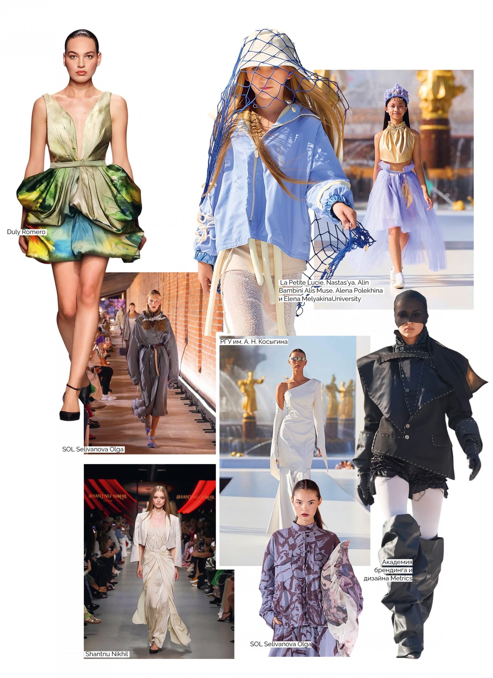 Я, как человек из мира ивента, оценивала показы не только с точки зрения разнообразия и кроя изделий, но и с позиции музыкального оформления, постановки. Многие коллекции были представлены под русские композиции, что не может не радовать! Показ Sasha Bardakov под «Один раз в год сады цветут» — был куда органичнее, чем парад моделей бренда TSIGANOVA под «Прощание славянки». Видимо, у меня, девчонки, рожденной в Куйбышеве, этот марш ассоциируется исключительно с отправлением фирменного поезда «Жигули» с 1 пути первой платформы. Показ Яниса Чамолиди и вовсе происходил под звон церковных колоколов. Думаю, это очень по-питерски.