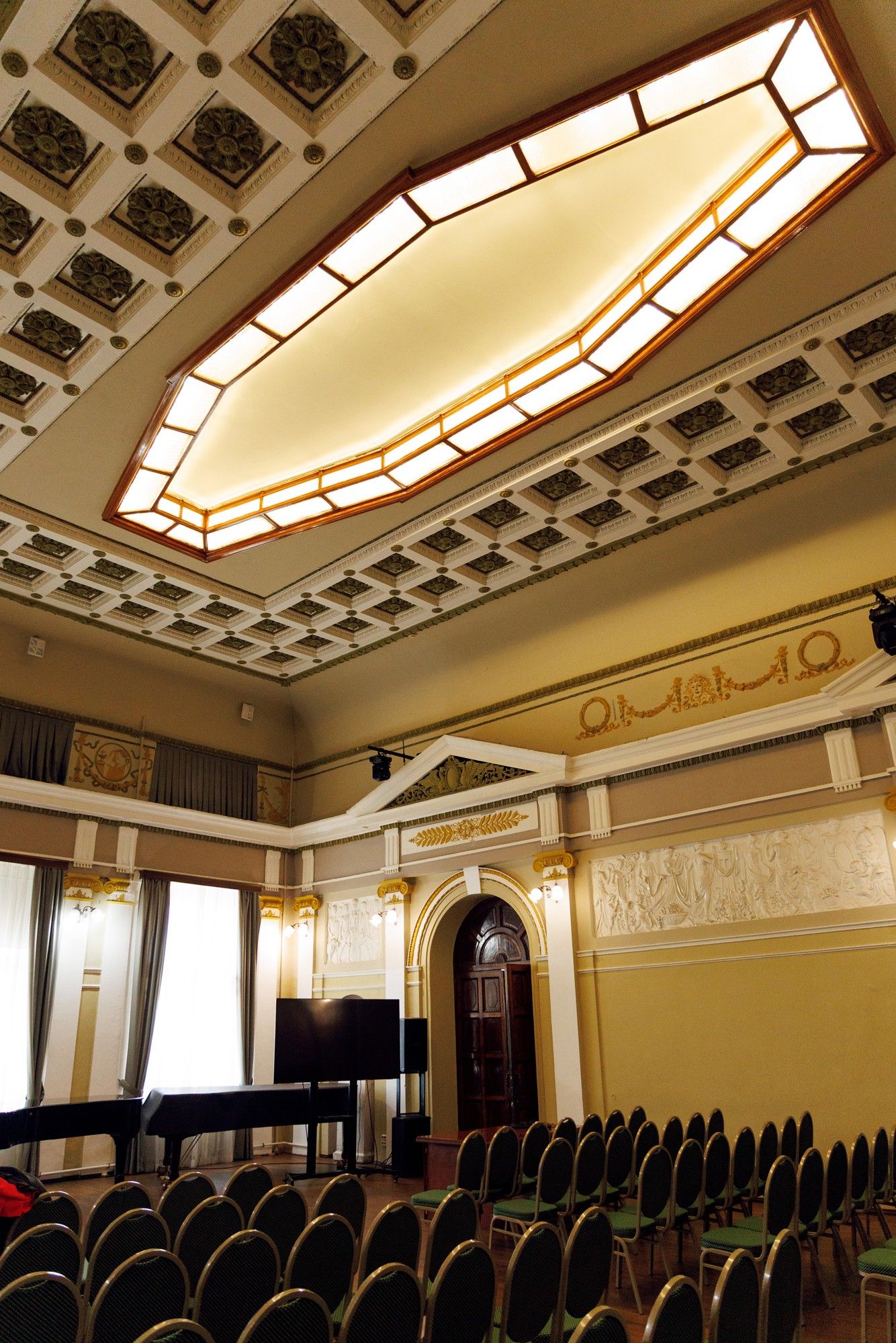 Также удивительна и архитектура здания. На первом и втором этажах сохранились колонны и мраморная лестница, ведущая в большой актовый зал, который ранее служил приемной губернатора, а сейчас там проводятся конференции и концерты. В этом зале очень интересные барельефы, связанные с греко-римской войной – губернатор, при котором строилось здание, был военным и увлекался историей.