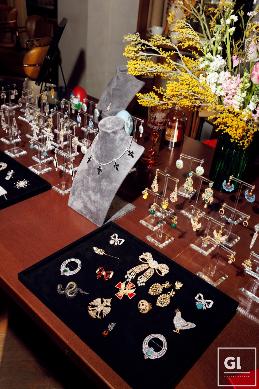 Красивый и душевный вечер в ресторане Vivi начался со знакомства с коллекцией ювелирных украшений и подарков к празднику Пасхи. Помимо традиции печь куличи, красить яйца, накрывать большой нарядный стол для семьи и близких в нашей стране возвращается утерянная традиция дарить на Пасху памятные подарки. К слову, это уже не первый подобный формат встречи с Петром Аксеновым. Накануне Рождества ювелир по приглашению журнала ГЛЯНЕЦ приезжал с лекцией о исконно русских новогодних традициях и привозил вечерние украшения к празднику. Теперь же настроение на весну и лето.