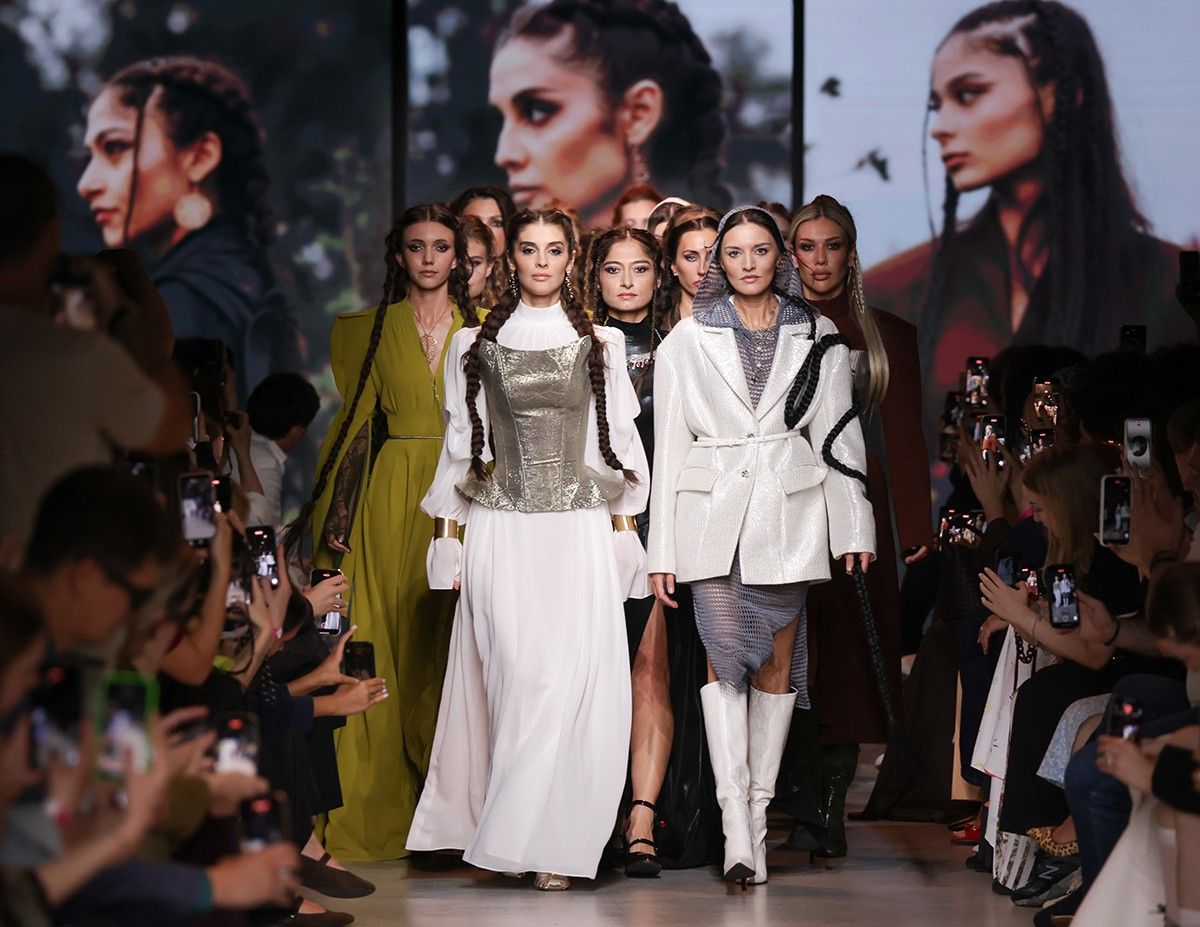 Фатима Шогенова, дизайнер и основатель российского бренда Hatsibana, представила свою новую коллекцию под названием «Амазонка», вдохновленную живописью Руслана Шамеева. Коллекция мастерски сочетает искусство и моду, превращая смелые мазки кисти и богатую символику в образы, воплощающие женскую силу и элегантность. Изысканно выполненные вручную жакеты с графическими принтами перекликаются с абстрактными элементами картин, а палитра глубокого оттенка охры, золотого, бордового, темно-синего, коричневого и зеленого отражает дух современной воительницы. Сочетая классические силуэты с эклектичными мотивами, коллекция подчеркивает гармонию силы и грации.