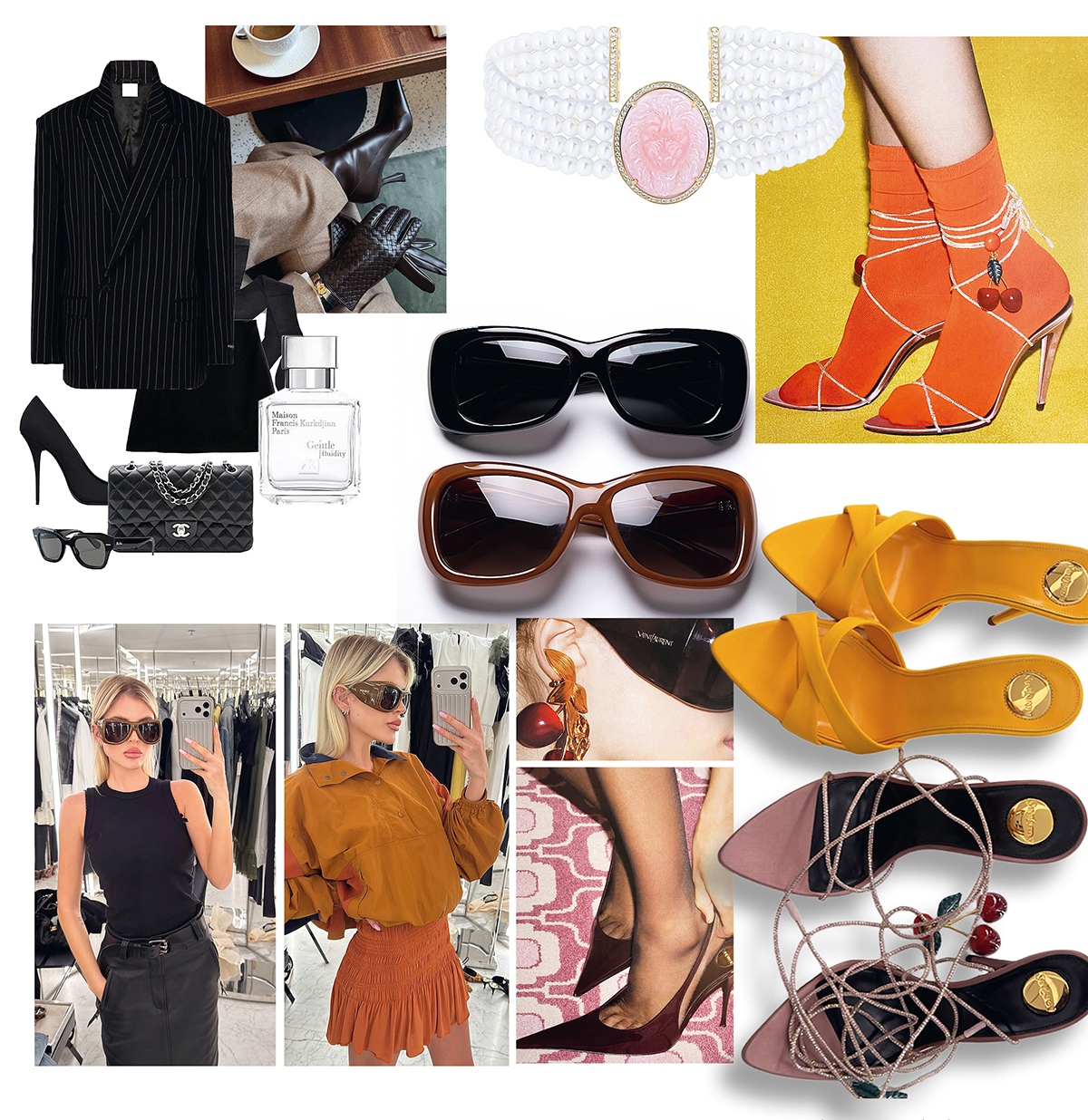 Просматривая коллекции нового сезона, с удивлением для себя обнаружила: большинство из сохраненного относится к коллекции Saint Laurent. Бренду, на который, при всем уважении к наследию его создателя, я никогда особенно не обращала внимания. А тут зацепили шелковые бомберы, массивные солнцезащитные очки в духе 80-х, контрастные анораки, остроносые туфли и вишенка на торте – вишни на босоножках из круизной коллекции 2026. Люблю вещи, которые балансируют между элегантностью, высокой модой и повседневностью. И эта коллекция Энтони Ваккарелло как раз об этом. С не меньшим энтузиазмом я слежу за новыми коллекциями российских марок. Приятно, что большинство потребностей можно закрыть, обращаясь к отечественным брендам, отыскать настоящие жемчужины. К слову, на этой фотографии я одета в русские марки: чокер из коллекции «Русская Сказка» Петра Аксенова. Увидела его впервые во время приезда ювелира в Самару в рамках лекции, организованной GL. Но тогда остановила выбор на сережках. Свитер – Ульяна Сергеенко, шорты нашла в бутике UNICO в «Инкубе». Так что не составляет труда собрать суперлук от российских дизайнеров.