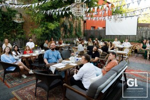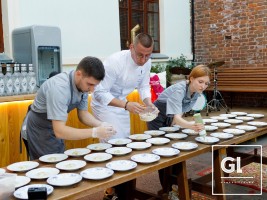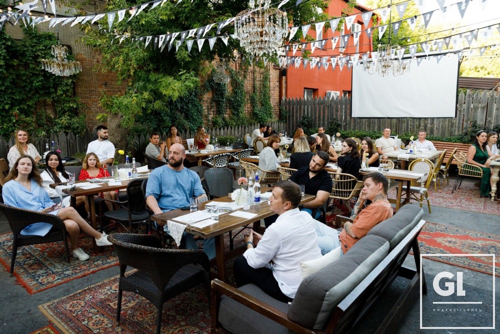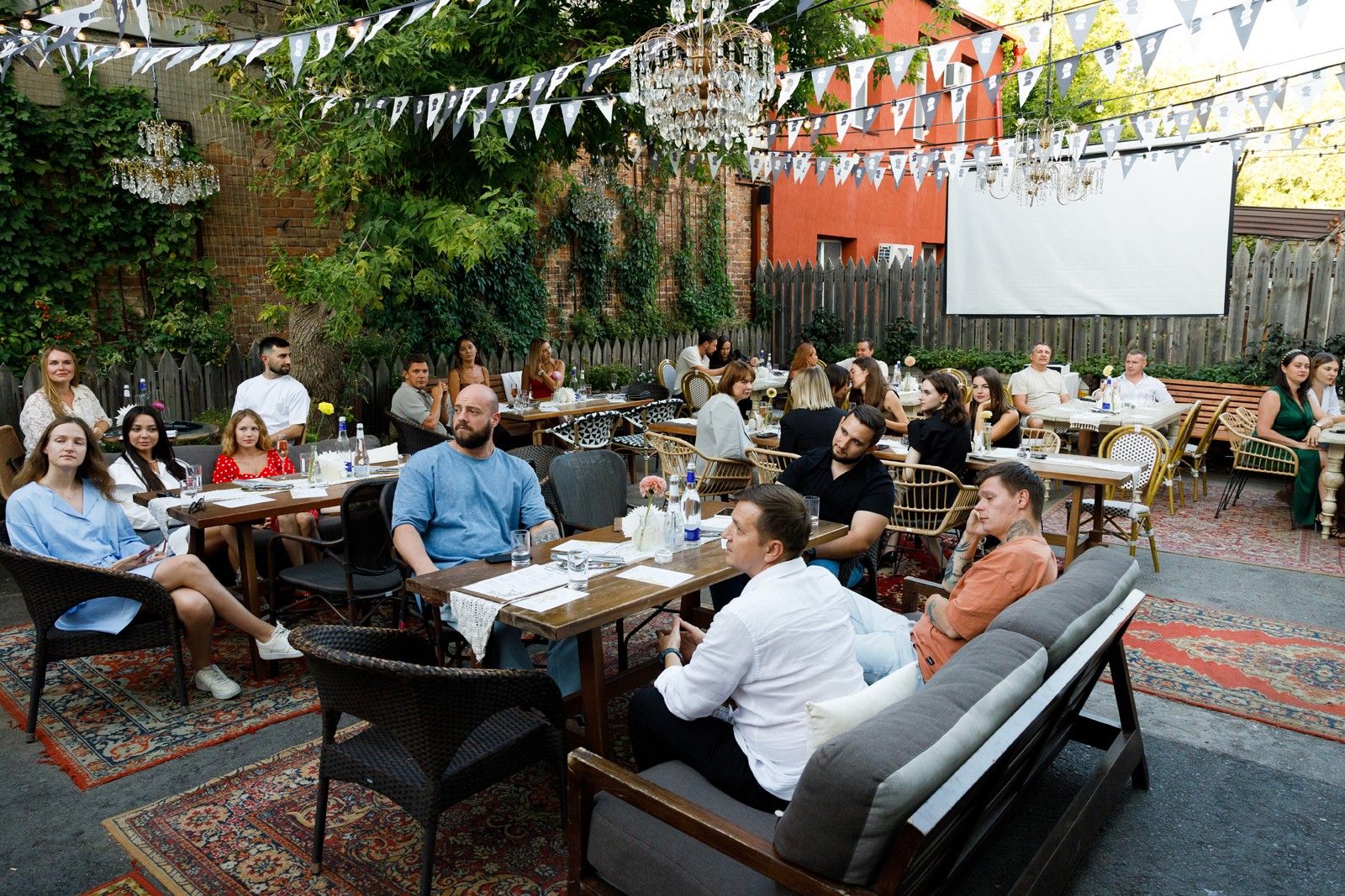 Гостей встречал теплый летний вечер, ужин происходил на открытом воздухе во дворе исторического особняка. Атмосфера была камерной и легкой: звучала живая музыка и комментарии гостей, повара и ведущий презентовали каждое блюдо, а последние штрихи в украшении еды добавляли прямо на глазах зрителей.