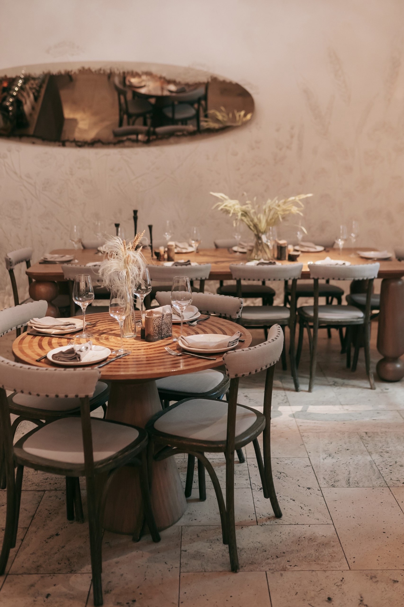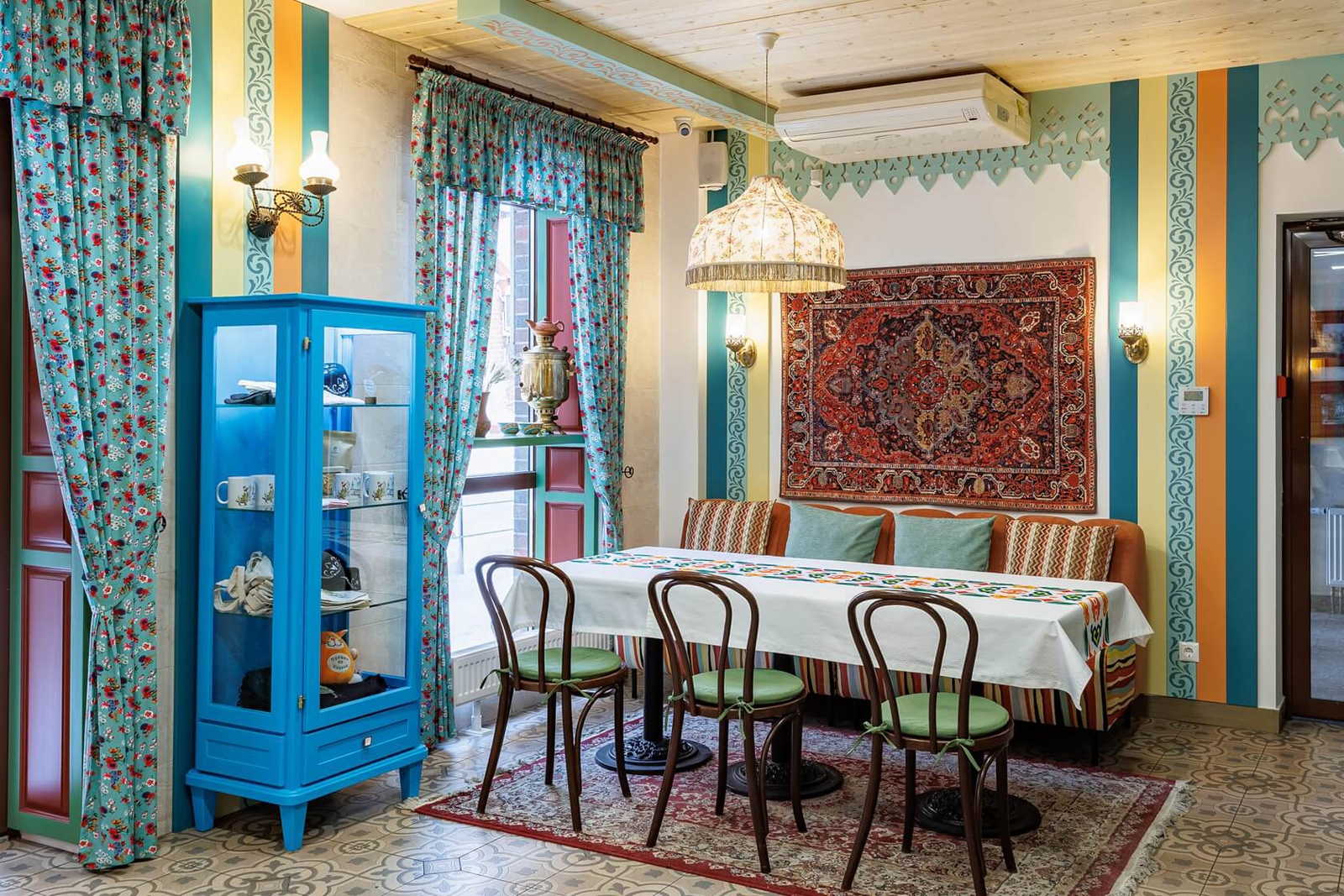 О «Чирэме» знают те, кто в Казани не бывал. Этот ресторан, расположившийся в Кремле, исправно попадает во всевозможные гастрогиды по столице Республики Татарстан. Мы смело отправляем в него всех, кто хочет попробовать национальную татарскую кухню. В меню — конское сало ат-тунмае, домашняя колбаса с говядиной и гречкой тутырма, традиционная татарская лапша с курицей и катыком, а также выпечка: закрытый пирог с начинкой из цыпленка и картофеля элеш, сахарные нити талкыш-калеве. Отдельно отметим интерьер от московского бюро Volkov Architects. Так на белых сводчатых стенах появились барельефы с растениями татарских лугов, створчатые ставни, спасающие от яркого солнца, и деревянные стеллажи, хранящие коллекцию трав и чаев со всего света.
