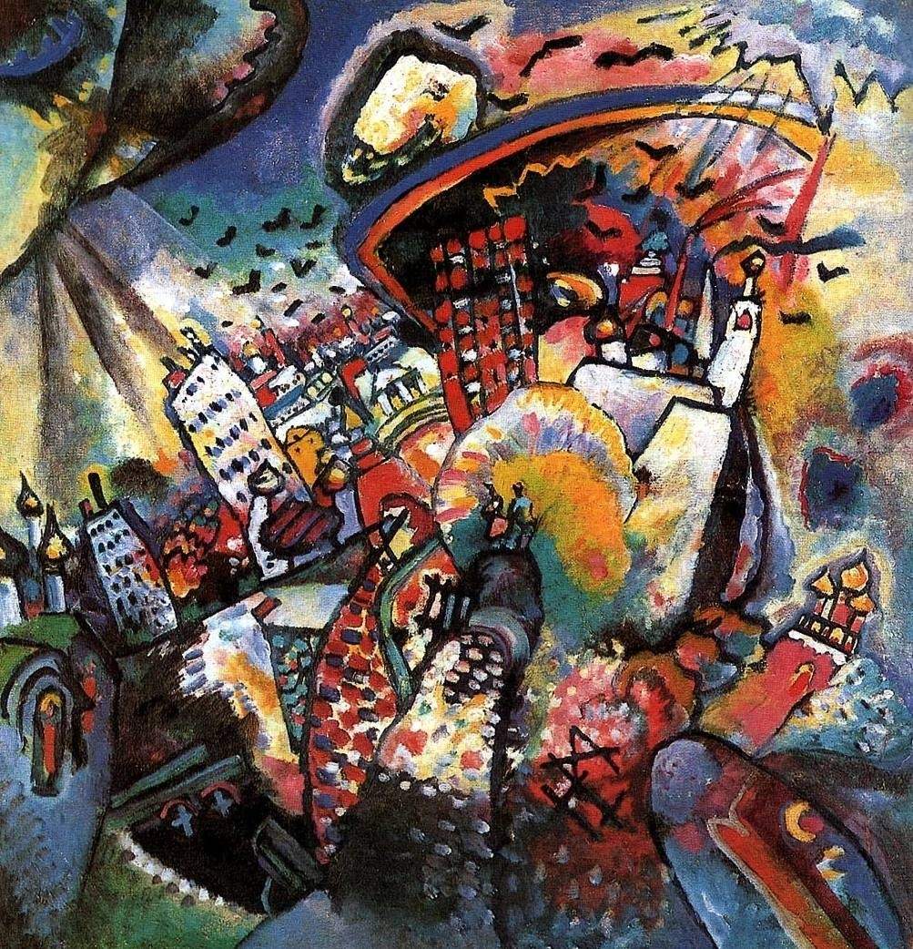«Хор красок» в своих работах создает Василий Кандинский. В своей работе «Москва. Красная площадь» 1916 года он не просто рисует предзакатную столицу, а как теоретик синтеза цвета и звука, создает живописный камертон. Каждый мазок на этой картине звучит по-своему. Например, красный цвет художник всегда ассоциировал со звуком бубна.