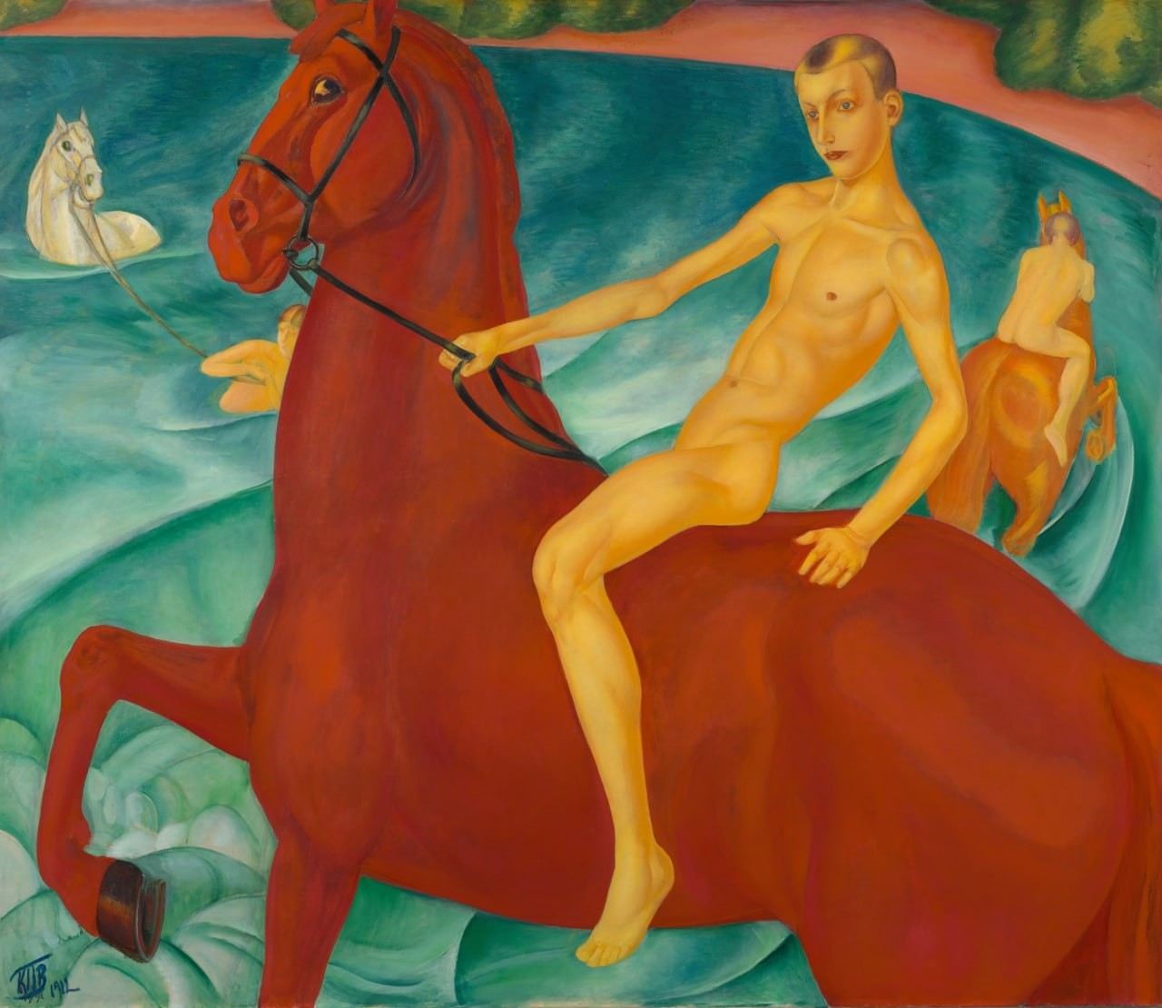 «Купание красного коня» — одна из самых известных российских картин 20 века. В ней художник соединил колорит новгородских икон с образностью Ренессанса, символикой человеческого тела, взятого у швейцарского символизма и, наконец, большими красными плоскостями, почерпнутыми из французского фовизма Анри Матисса. Петров-Водкин вобрал в себя разные традиции, создав то, что называется «символическая картина», — рассказал о приме куратор выставки «В круге цвета. Красный» Константин Зацепин.