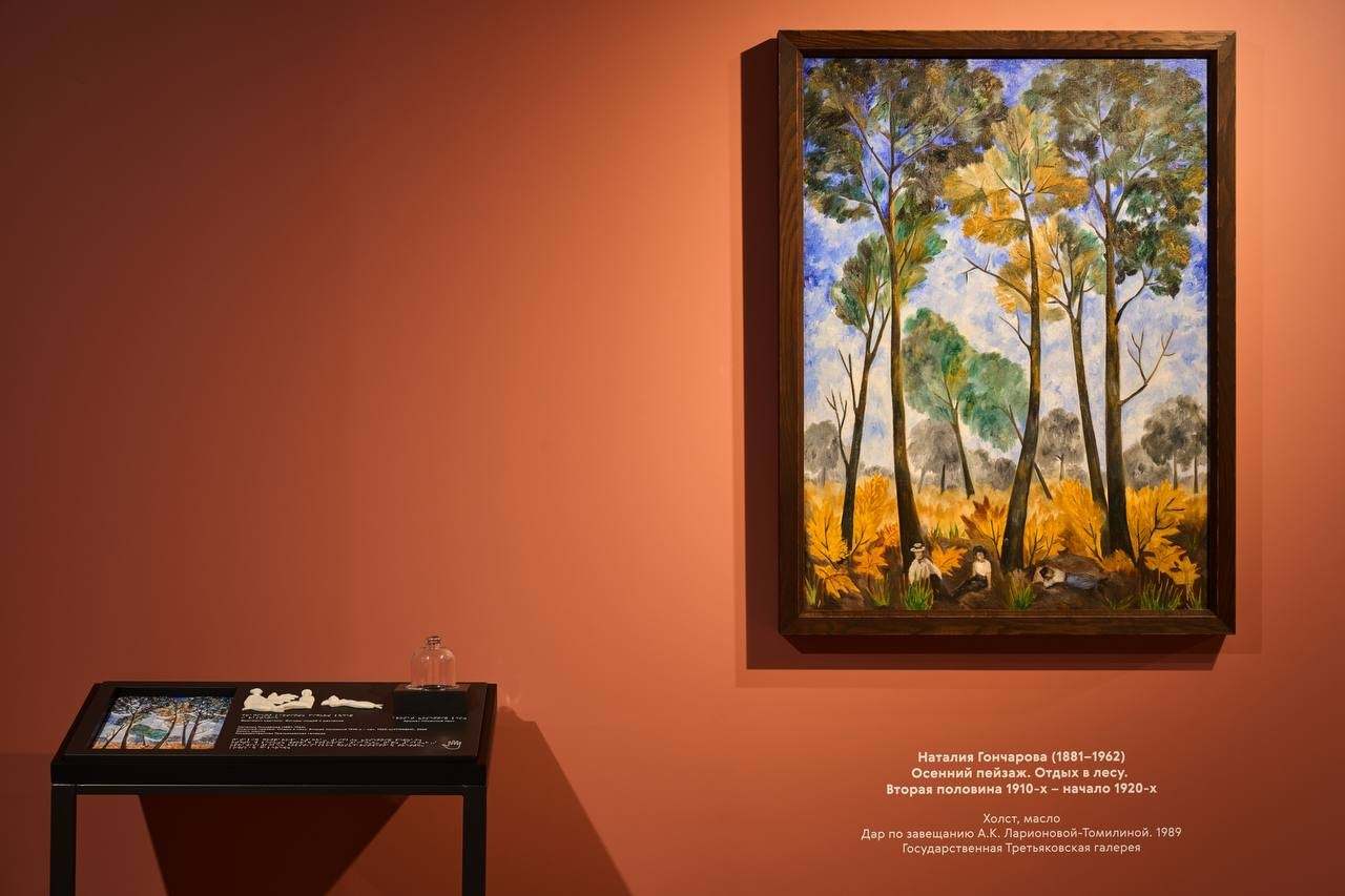Они включают, к примеру, рельефную копию «Натюрморта с лимонами и ступкой» Александра Осмёркина. Гости могут прикоснуться к объёмным репликам элементов картины Натальи Гончаровой и ощутить ароматическую композицию, созданную по мотивам её работы и передающую запах осеннего леса. Аудиосопровождение для выставки было записано известным телеведущим и коллекционером Андреем Малаховым.