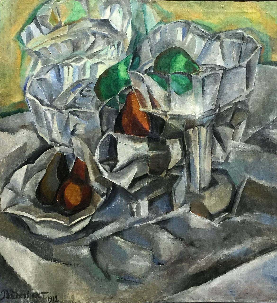 «Довольно интересная картина с точки зрения восприятия. Поль Сезанн, известный своим перфекционизмом, мог работать над одним натюрмортом месяцами и порой даже пользовался бутафорскими фруктами. Художник часто изображал искусно драпированные скатерти, которые становились самостоятельным элементом композиции. Их складки порой напоминали очертания горячо любимой Сезанном горы святой Виктории. Главной особенностью его натюрмортов стало сознательное искажение перспективы. Предметы на картинах часто показаны одновременно с разных точек зрения: например, стол изображен в разных плоскостях, а кувшин — одновременно сверху и сбоку. Его работами вдохновились Пабло Пикассо и Жорж Брак. Вслед за ними в кубистской традиции начал писать Василий Рождественский. На нашей выставке можно увидеть его работу под названием «Хрусталь», - подчеркнул Никита Пастушенков.