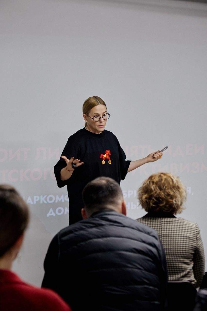 Коммерческий директор девелоперской компании «АльянсМенеджмент» Мария Иванова рассказала гостям о философии компании, принципах девелопмента и вдохновении, которое команда черпала из наследия конструктивизма. В центре внимания — галерейный Дом искусств, отсылающий к знаменитому Дому Наркомфина в Москве. Этот архитектурный образ стал ядром проекта и воплощением идей Гинзбурга в современном контексте.
