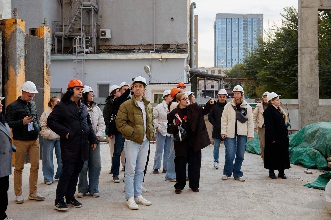 После презентации участники отправились на стройплощадку, чтобы лично увидеть, как реализуется архитектурная концепция. Под крышей уже готового галерейного дома они исследовали квартиры-ячейки, оценили впечатляющие высоты потолков и уникальные панорамные окна.