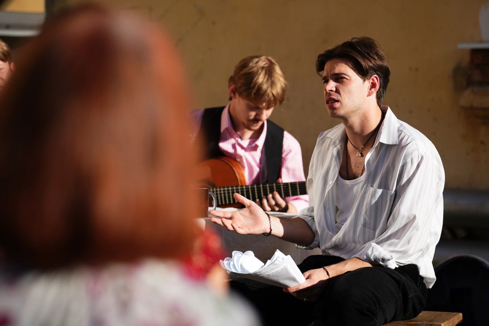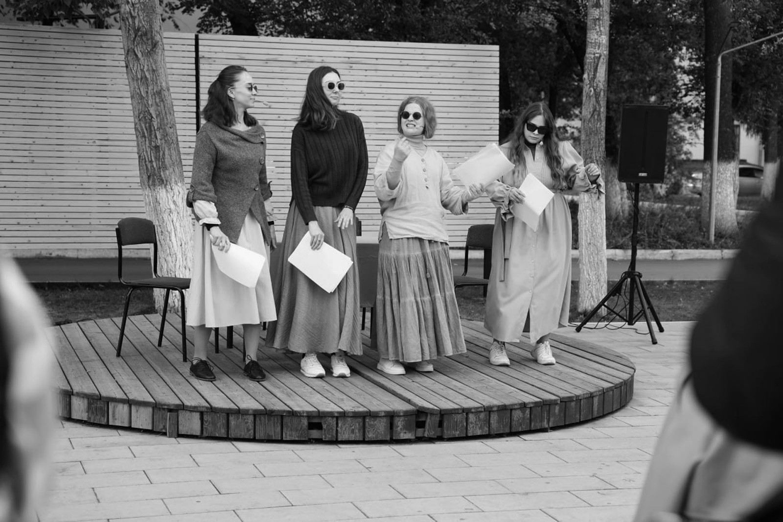 Следующее выступление уже состоялось в Библиотечном дворике, рядом с Центральной библиотекой им. Пушкина. На этот раз звучали стихи о любви, в основном женская поэзия сороковых, шестидесятых, восьмидесятых годов 20 века, и было интересно следить за тем, как менялось слово, как менялись метафоры и образы в поэтических строках. Программу «Такая разная любовь» исполнили молодые актрисы театра: Ярослава Афанасьева, Оля Гречихина, Алина Нашивочникова и Алиса Королева.