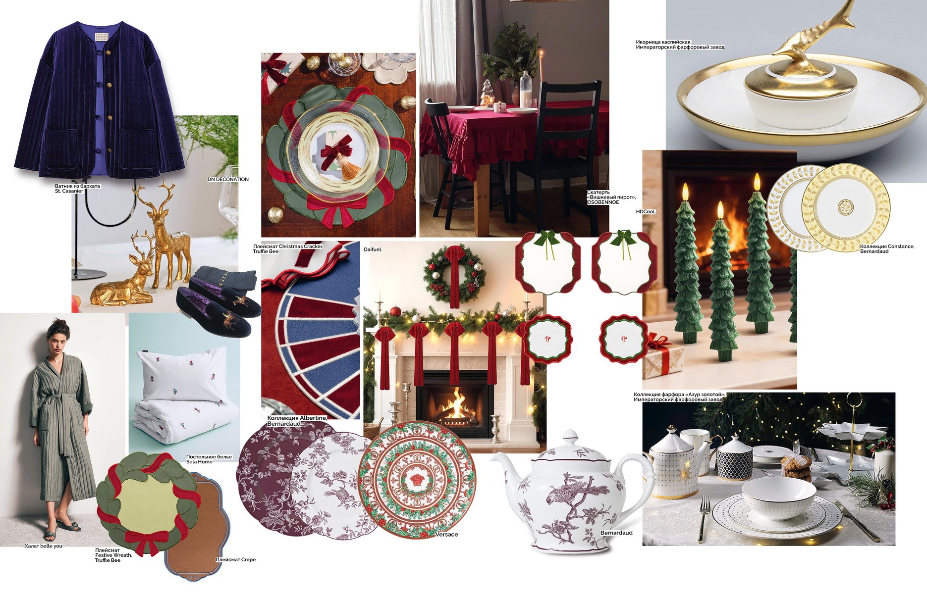 Декор в духе Ralph Lauren – это несложно: зеленый тартан на праздничной скатерти, пледах, подушках, латунные подсвечники, сочетание глубоких красных и синих оттенков, сосновые гирлянды, натуральные шишки, бархатные игрушки, много дерева и натуральных материалов. Красные розы также обязательны к использованию и как самостоятельный акцент, и/или в сочетании с листьями магнолии и вечнозелеными растениями. Свечи можно заменить на маленькие ураганные фонарики, добавив эффектный завершающий штрих к сервировке стола, особенно если Новый год вы отмечаете за городом. Для воссоздания эстетики Ralph Lauren совершенно не обязательно скупить декор бренда – по сути это классика, которую можно встретить в новогодних коллекциях многих брендов, на маркетплейсах из года в год.