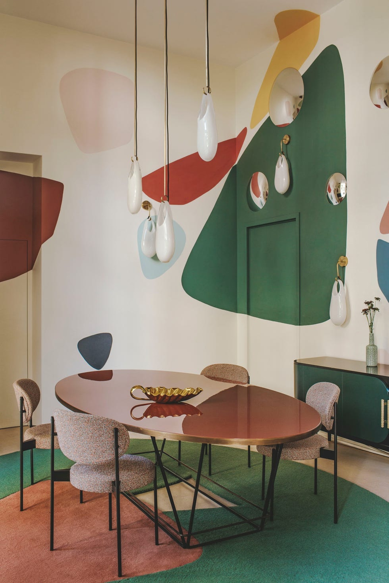 Поскольку в последние несколько лет маятник стиля уверенно качается в сторону максимализма, многие профессионалы в области дизайна интерьеров отказываются от обоев, повторяющихся узоров и самоклеящихся наклеек в пользу более долговечных фресок.